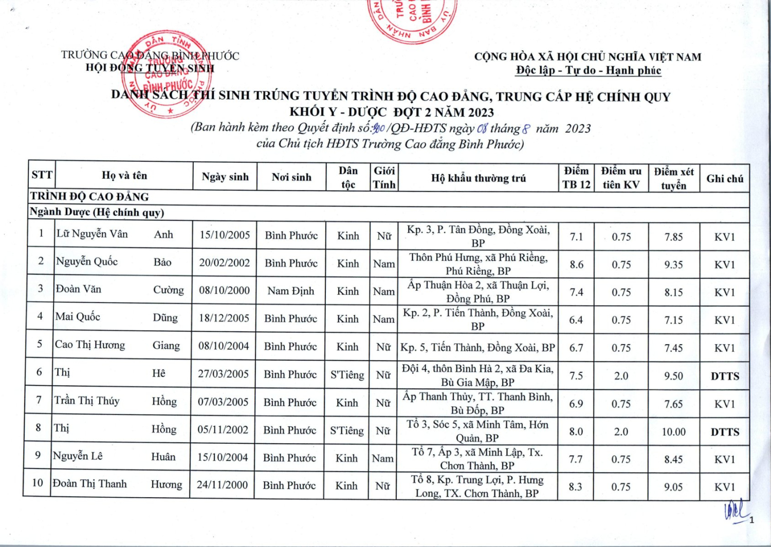 Điểm chuẩn trúng tuyển ngành Giáo dục Mầm non, trình độ Cao đẳng của trường Cao đẳng Bình Phước năm 2025